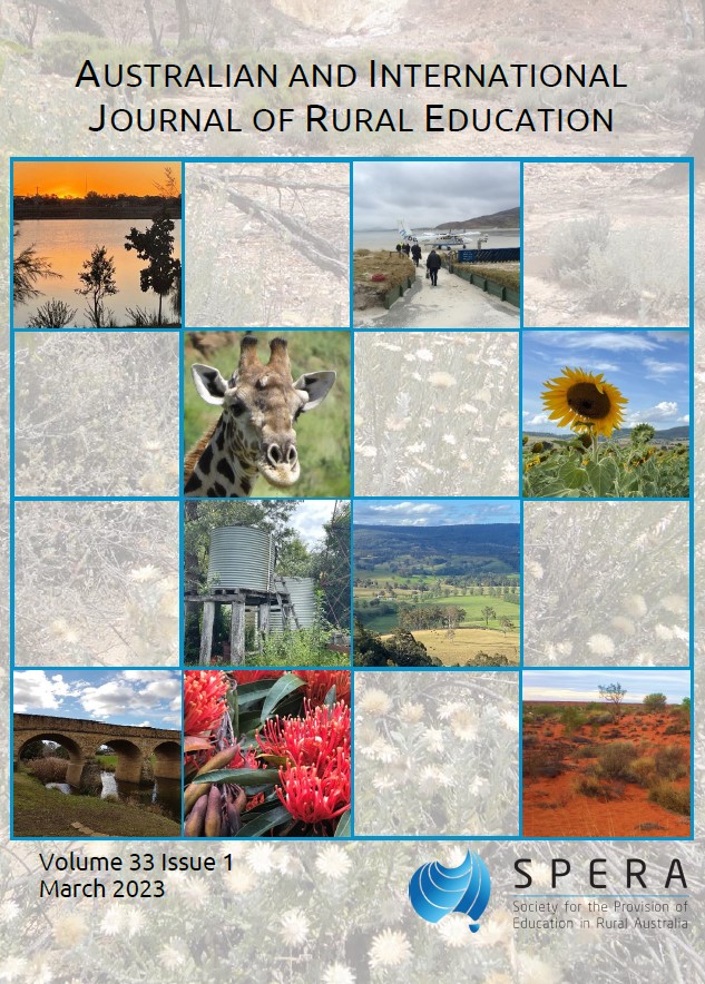 Vol. 33 No. 2 (2023)In this special issue of the Australian and International Journal of Rural Education, international scholars consider how rural knowledges are – or are not – embedded in their local educational systems. They draw on their work, research, and their lived-experiences in rural education to explore the opportunities and challenges of enacting place-conscious curriculum and pedagogies. The origins of this special issue lie in a panel discussion held online during the COVID-19 pandemic and hosted by the European Educational Research Association (EERA) Network 14 in March 2022.
